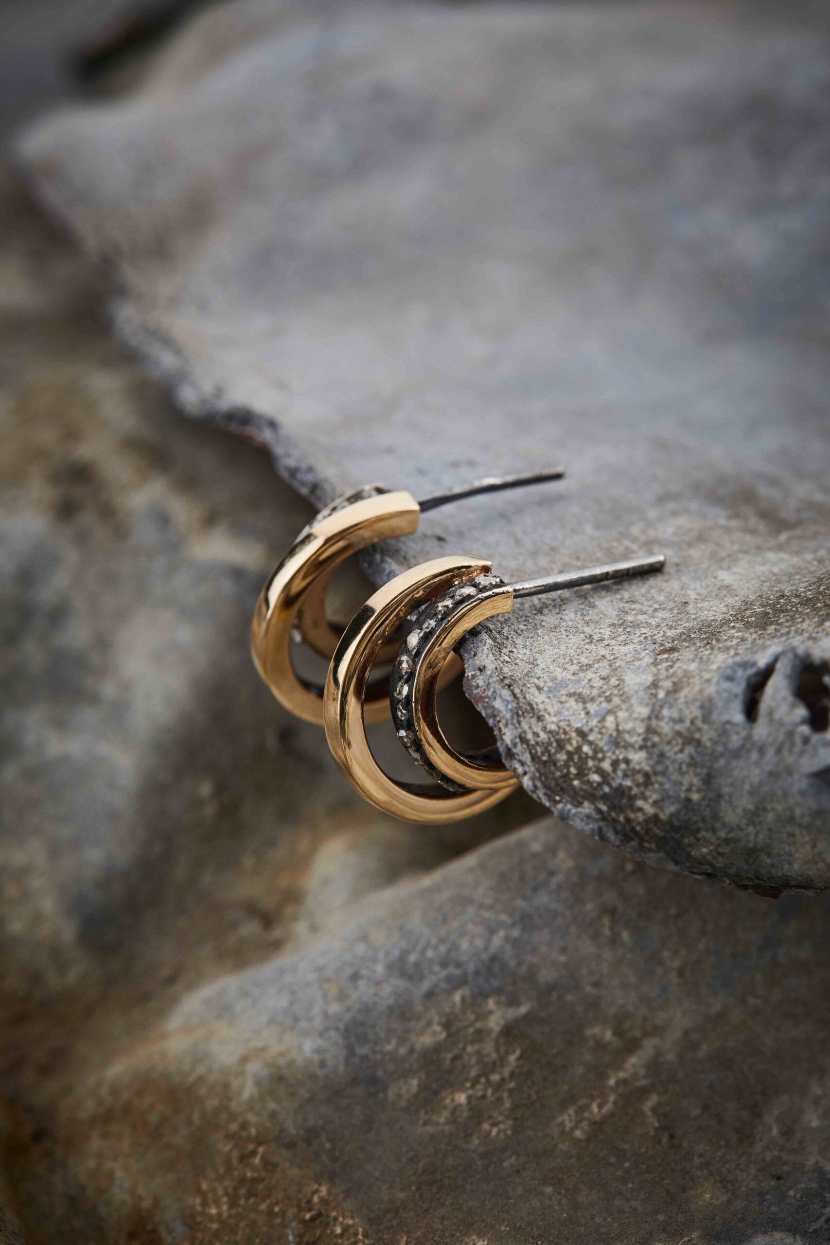 Hand forged in 925 sterling silver and 14 karat gold band with rose cut diamonds (0.34ct).