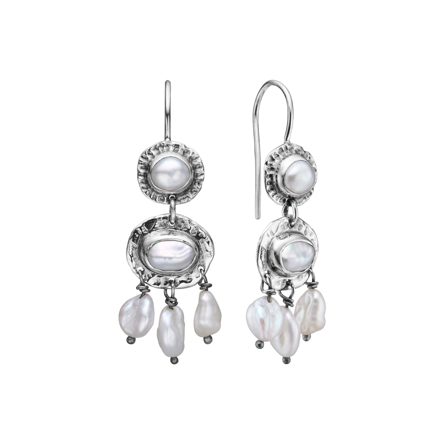 Nu er ørehængerne blevet lavet i sølv, og denne version er prydet med hvide keshi perler.