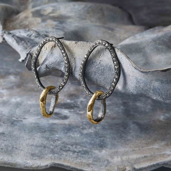 Silver w/ rose cut diamonds pavé (1,20ct) & gold adorned loop. H 44mm