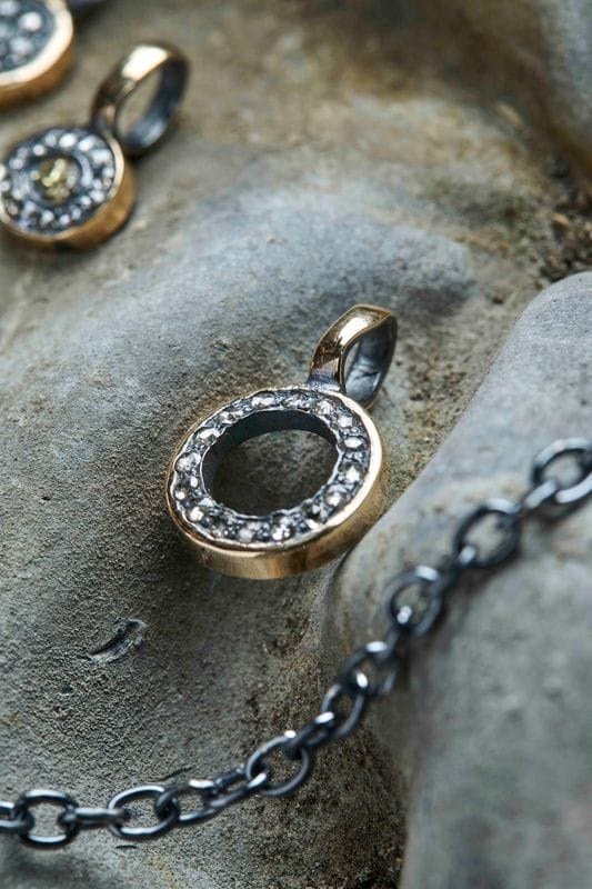 Handforged in 925 sterling silver and 14K gold with rose cut (0.28ct) diamonds pavé.