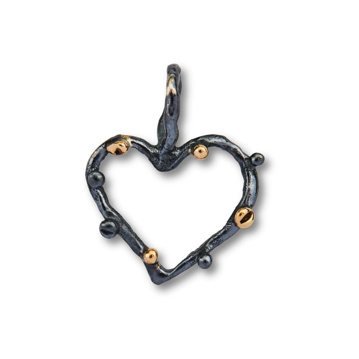 Hand forged in 925 sterling silver and 14 karat gold with gold & silver balls