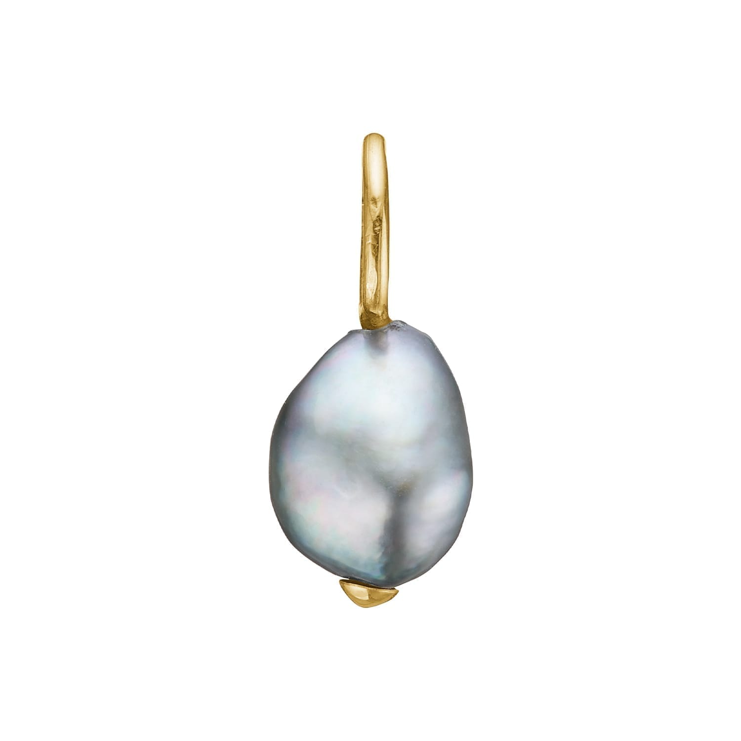 Vedhænget er lavet med et 14 karat guld ophæng, hvorfra der hænger en naturlig grå keshi perle.